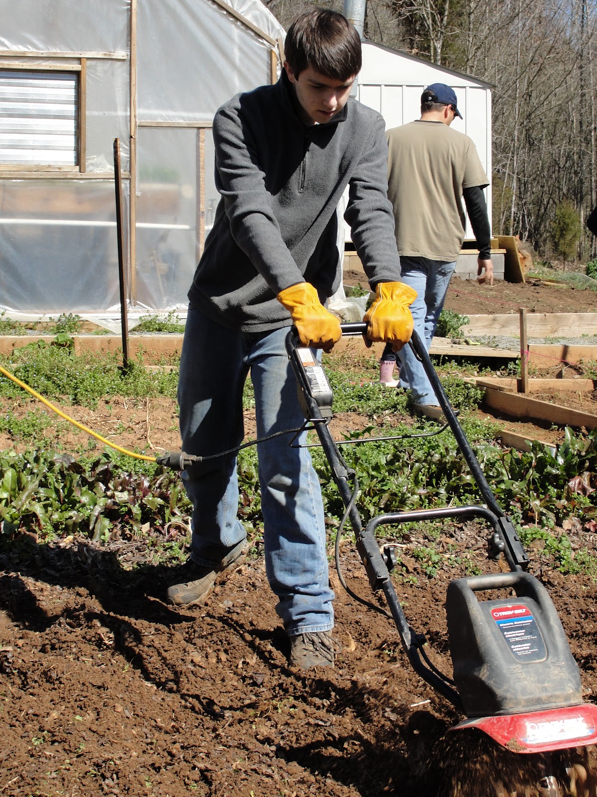 A CSA member preparing the soil.