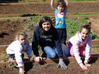 Some of our young CSA members planting peas.